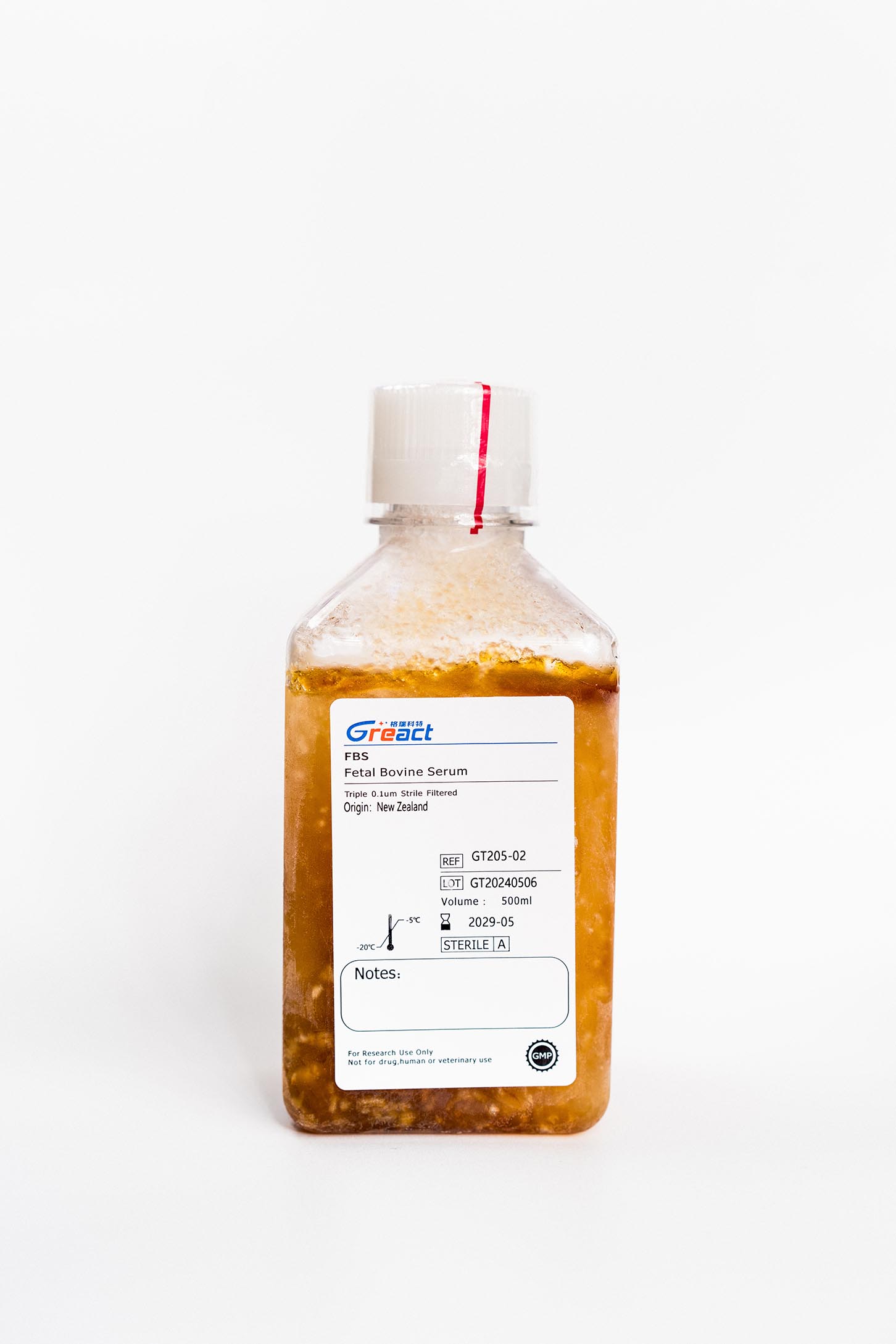 胎牛血清常用于真核细胞体外培养,能够为培养细胞的维持和生长提供必要的营养物质和生长因子,从而被广泛用于基础研 究、生物制品和药品生产中。 Fetal Bovine Serum 血清来源于无菌采集的健康胎牛血清,对标产品为进口南美血清。该血清在 GMP 级别洁净车间内进 行灌装生产,经自然层析、离心、三级 0.1 µm 微滤等处理从而得到批量大且批间稳定的上清液。该血清经验证可用于大部 分常规肿瘤细胞如 A549 ,免疫细胞如 THP-1、RAW264.7、Raji ,部分原代细胞和胚胎干细胞的培养。